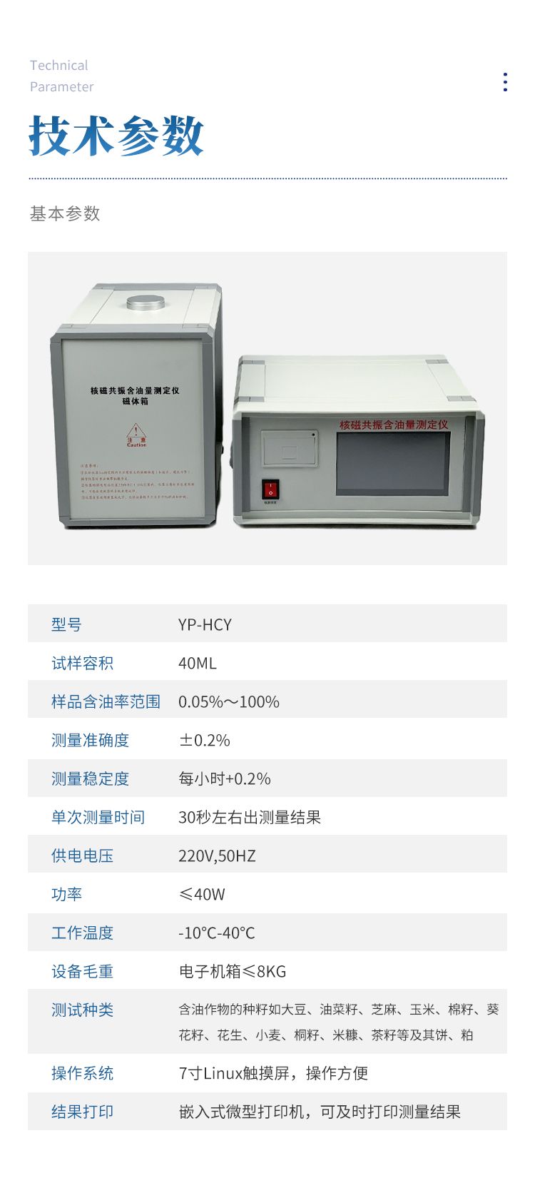 8、符合GB/T 15690-2008,《植物含油  含油量測定 連續波低分辨率核磁共振測定法(快速法)》的要求;