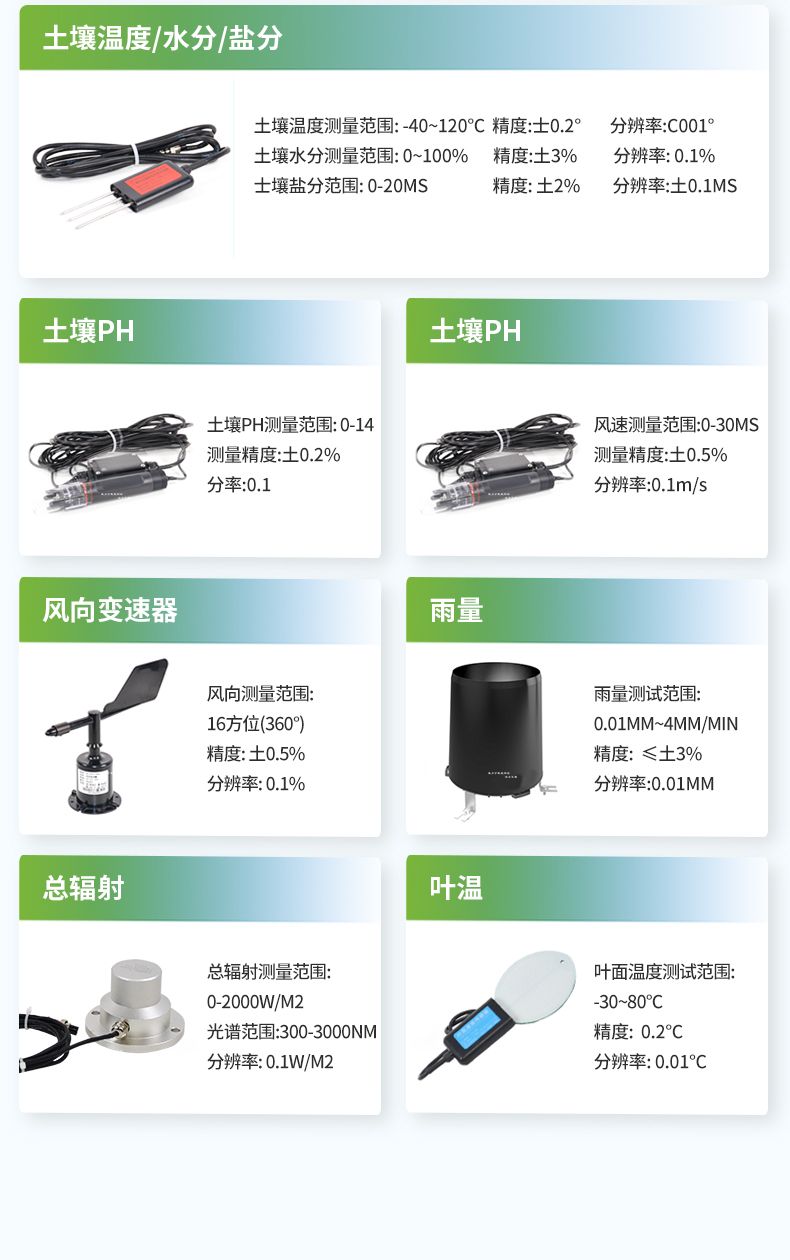 土壤溫度測量范圍:-40~120℃ 精度:±0.2℃ 分辨率:0.01℃