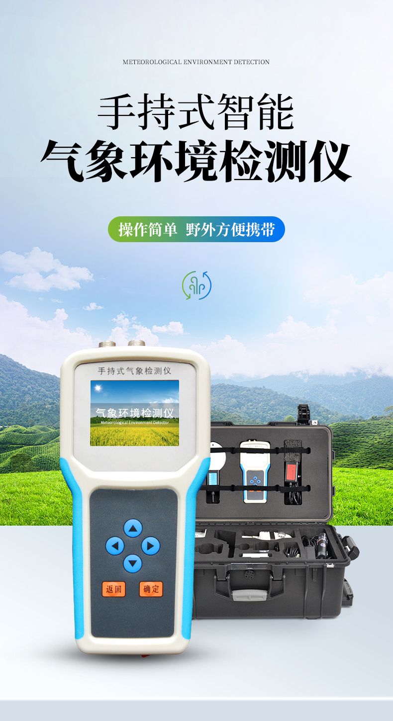 手持式智能農業氣象環境檢測儀是我們專門針對農田、草場局部小尺度環境設計的,對與植被和農作物生長密切相關的土壤、水氣等環境參數監測的農田小氣候站。它主要觀測與農業相關的空氣溫度、空氣濕度、光照強度、二氧化碳濃度、露點溫度、光合有效輻射、土壤溫度、土壤水分、土壤鹽分、土壤PH、風速、風向等12個環境參數氣象要素,為農業科研、農業生產等提供良好的支持。
