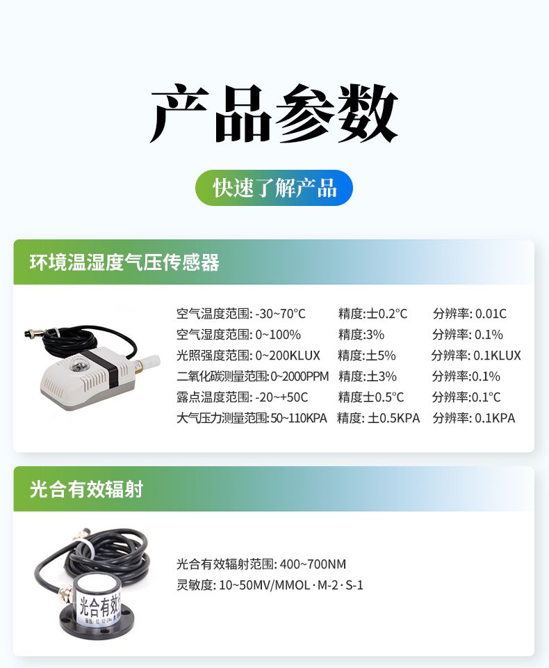 光合有效輻射范圍:400~700nm 靈 敏 度:10~50μv/μmol·m-2·s-1