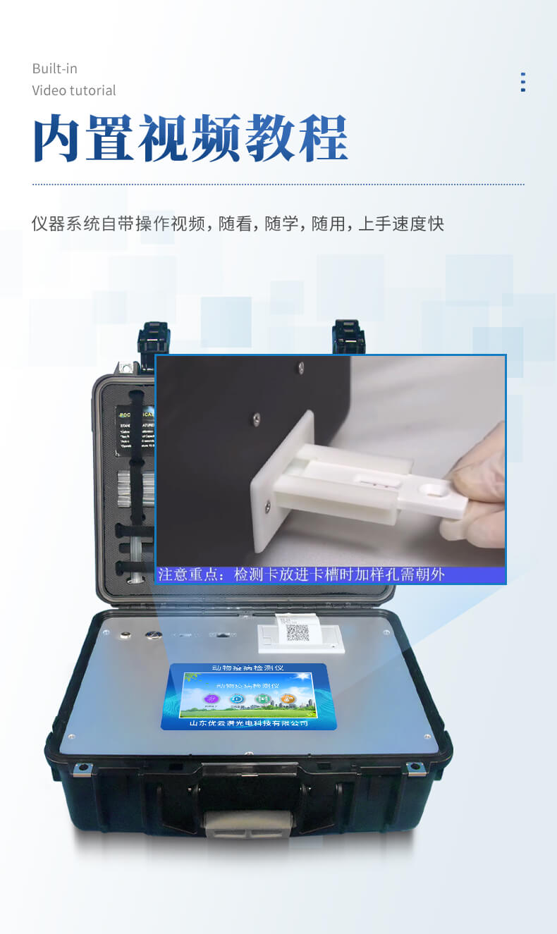 動物疫病診斷儀可現場快速檢測豬藍耳病毒、豬瘟病毒、黃曲霉毒素B1、豬偽狂犬病毒、豬偽狂犬病毒gE蛋白、豬口蹄疫3ABC蛋白、豬口蹄疫病毒IgG、豬細小病毒、雞禽流感等快速檢測、鹽酸克倫特羅、萊克多巴胺、沙丁胺醇、恩諾沙星、氯霉素、鏈霉素、三聚氰胺、慶大霉素、磺胺類、喹喏酮類、呋喃類、四環素類、阿莫西林、孔雀石綠、黃曲霉毒素(B1,B2,G1,G2,M1,M2 )、疾病診斷、環丙沙星、紅霉素、土霉素、喹乙醇、已烯雌酚等項目的定性檢測。