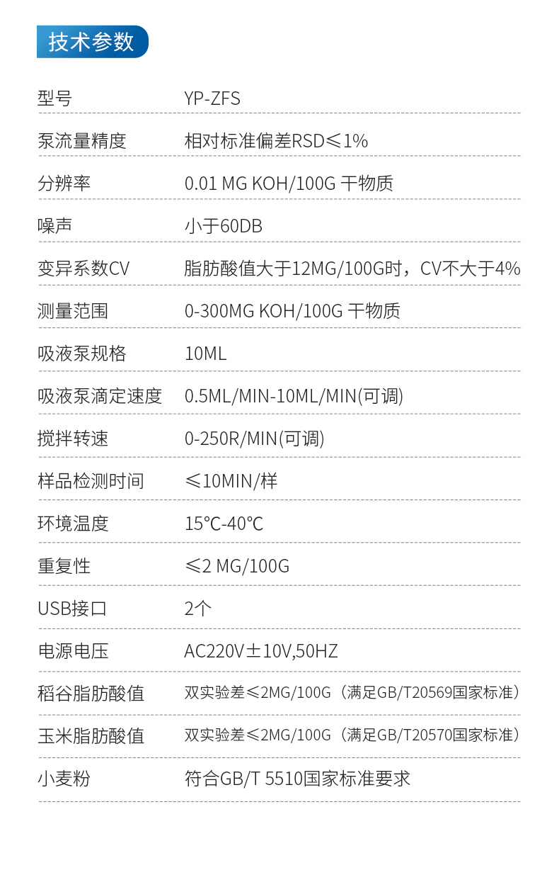 全自動脂肪酸值測定儀是針對脂肪酸值作為判斷儲糧品質(zhì)劣變的重要儀器設(shè)備,是一種以電極電位突躍作為指示終點為控制依據(jù)的自動滴定裝置。主要用于測定稻谷、糙米、大米等糧食作物的脂肪酸值,是一種專用檢測設(shè)備。本儀器實現(xiàn)了滴定終點判定、計量、數(shù)據(jù)處理、測定結(jié)果顯示及打印功能自動化,提高了檢測結(jié)果的客觀性及準(zhǔn)確性,具有操作簡單、使用方便的特點。