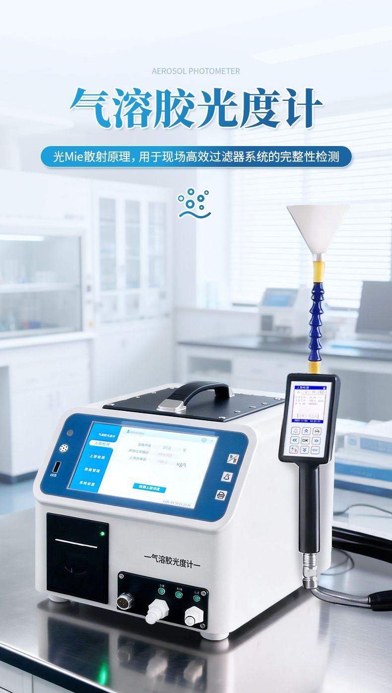 AP1型氣溶膠光度計是根據(jù)光Mie散射原理設計的,主要用于現(xiàn)場高效過濾器系統(tǒng)的完整性檢測。主機采用7寸LCD液晶,實時顯示濃度數(shù)據(jù)、泄露率等參數(shù)。適用于HEPA過濾器、HVAC系統(tǒng)、生物安全柜、潔凈室、手套箱等泄露檢測。