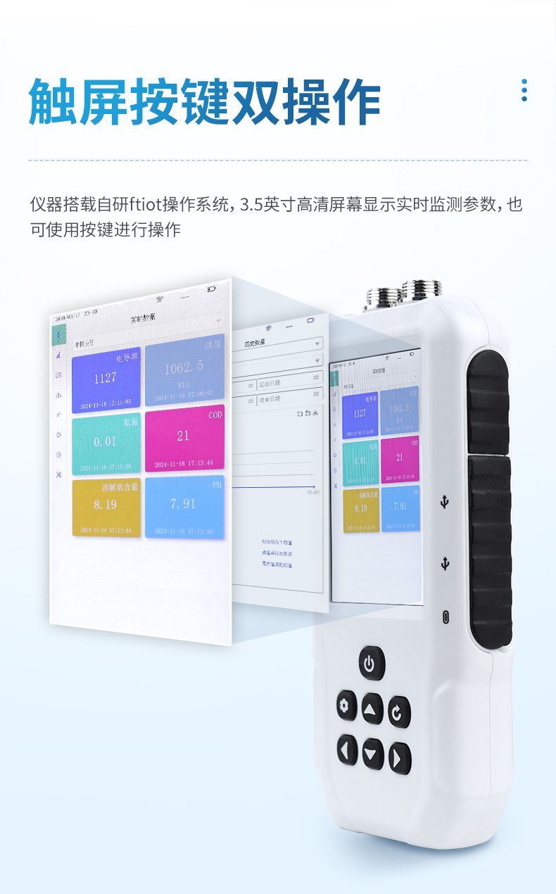 便攜式多參數(shù)水質(zhì)測定儀是一款電極法水質(zhì)分析儀器,采用全數(shù)字電極檢測,可檢測水質(zhì)的水中油參數(shù)。儀器搭載自研ftiot操作系統(tǒng),操作簡單、性能穩(wěn)定、測量準確、檢測范圍廣,內(nèi)置高容量充電鋰電池,便于用戶在野外、實驗室隨時進行水質(zhì)檢測工作。