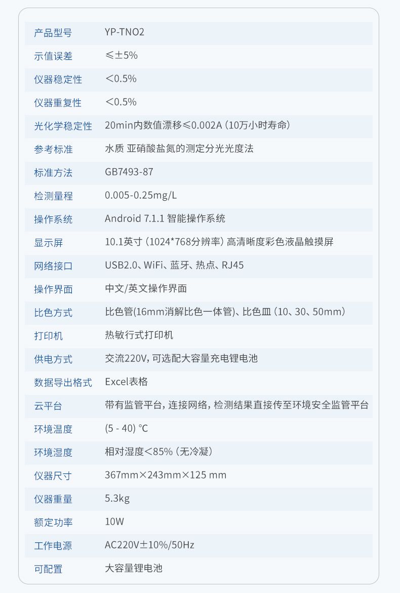 手持式亞硝酸鹽氮檢測儀主要檢測水體中的亞硝酸鹽氮含量;參考方法《變色酸光度法》研發設計制造,儀器配備高清晰度彩色液晶觸摸顯示屏,Android智能操作系統,中文顯示界面,中英文鍵盤,人性化操作,使用更簡單;