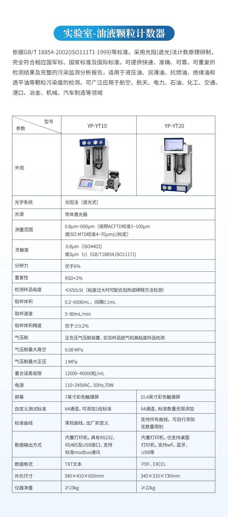 l 內(nèi)置IS04406、NAS1638、SAE4059、GJB420A、GJB420B、 ГOCT17216、GB/T14039 顆粒污染度等級(jí)標(biāo)準(zhǔn);