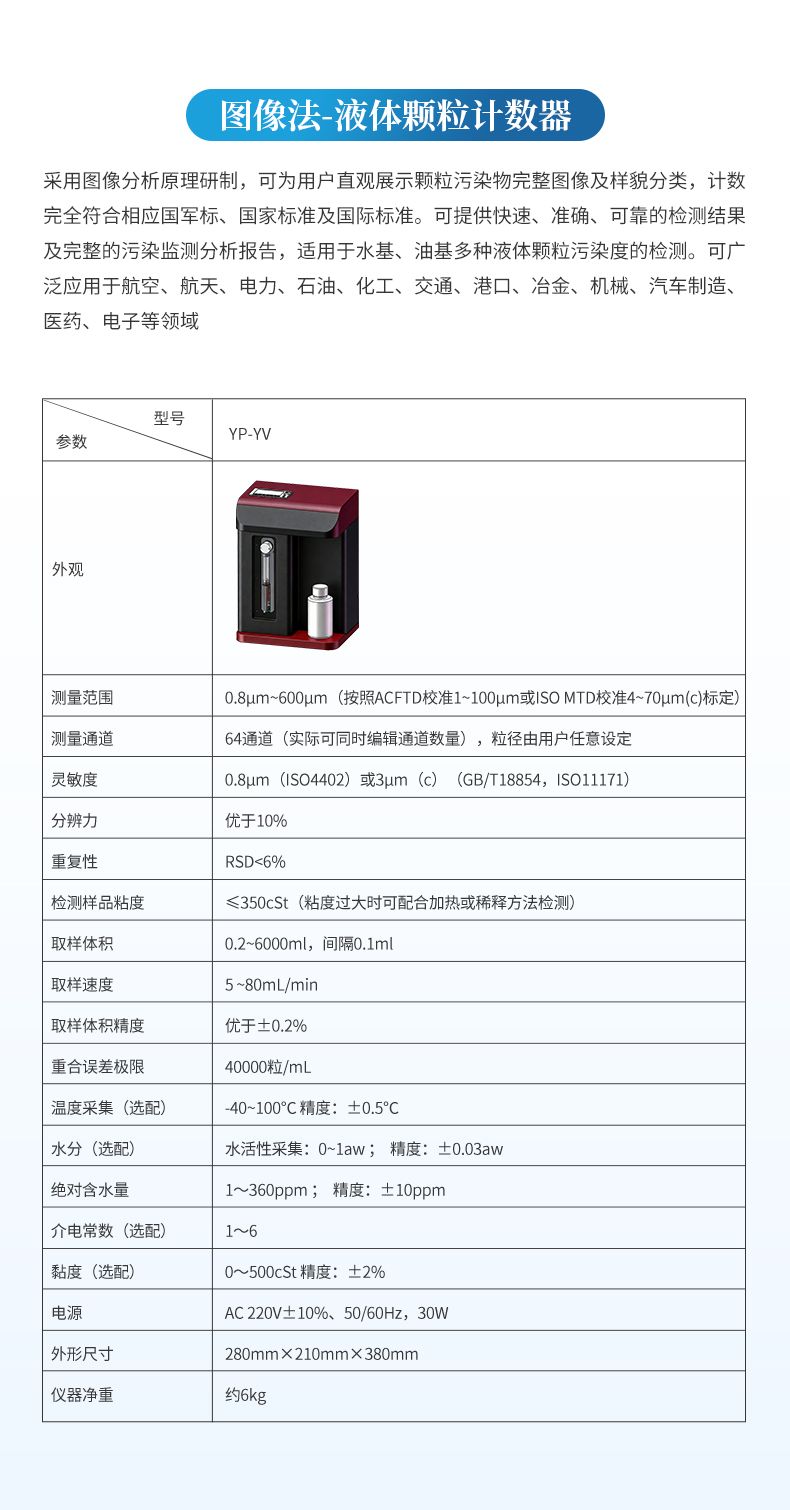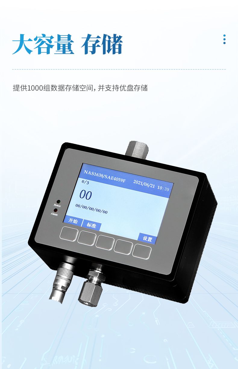 內置ISO4406、NAS1638、SAE4059、GJB420A、GJB420B、ГOCT17216、GB/T14039等顆粒污染度等級標準