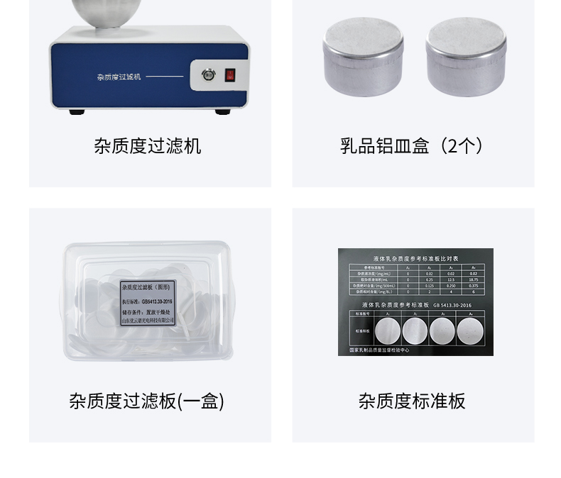 配置:主機一臺,乳品鋁皿盒二個,雜質(zhì)度過濾板一盒,雜質(zhì)度標準板一張,雜質(zhì)度標準板使用說明一份,雜質(zhì)度過濾機使用說明書一份,實驗規(guī)范一份,合格證一張)