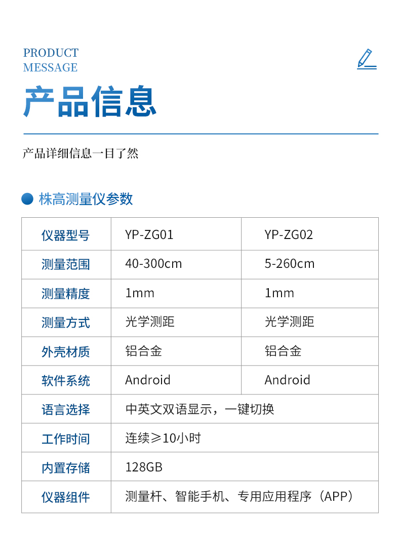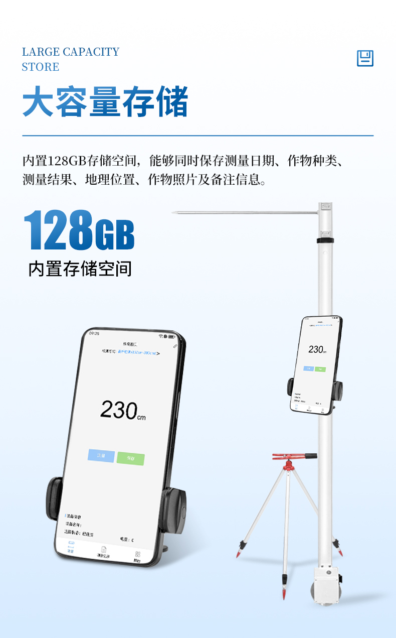 10.廣泛應用性 - 最低測量高度0.05米,最大測量高度2.6米,適用于大多數(shù)類型的農(nóng)作物株高測量需求。