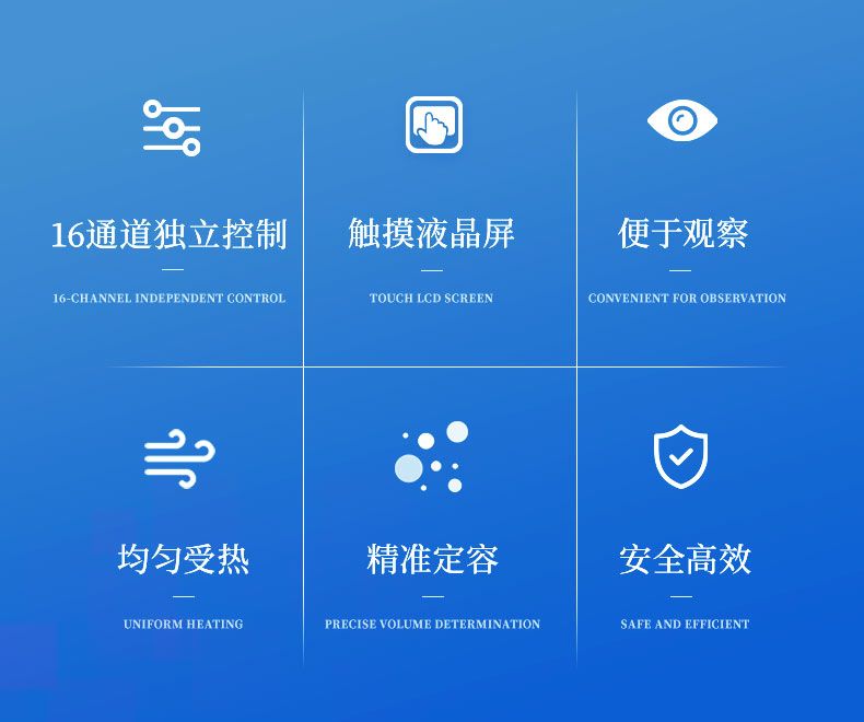 采用比熱容大的水作為導熱媒介,每個孔位的溫度一致,使樣品在濃縮過程保持高度平行性。